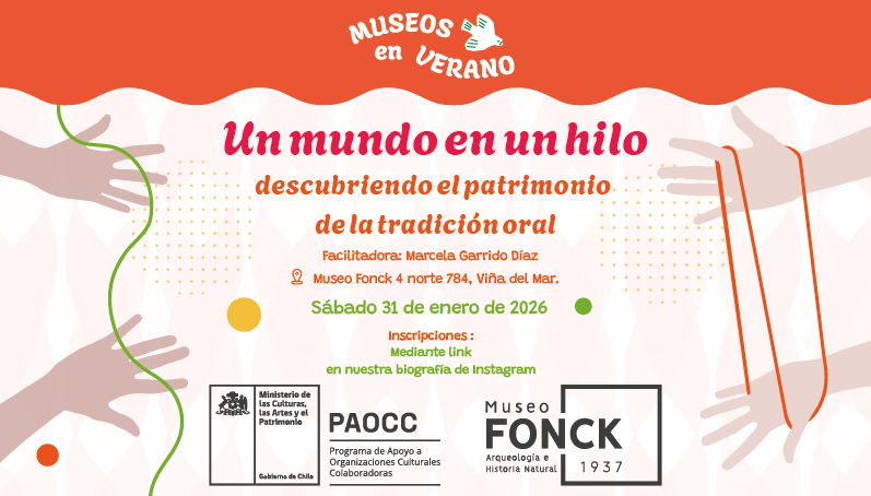 El sábado 31 de enero de 2026, a las 16:00 horas, Museo Fonck, ubicado en 4 Norte 784, Viña del Mar, realizará el taller “Un mundo en un hilo: descubriendo el patrimonio de la tradición oral”, a cargo de la tallerista, magister en educación y experta en figuras de hilos, Marcela Garrido Diaz.