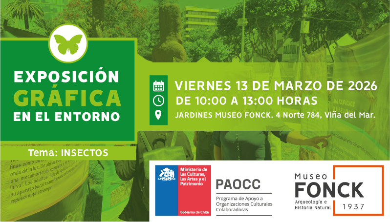 El viernes 13 de marzo de 2026, de 10:00 a 13:00 horas, Museo Fonck, ubicado en 4 Norte 784, esquina 1 Oriente, Viña del Mar, realizará una exposición gráfica en el entorno sobre insectos con mediación. Es una instancia gratuita y presencial, ideal para disfrutar en familia.